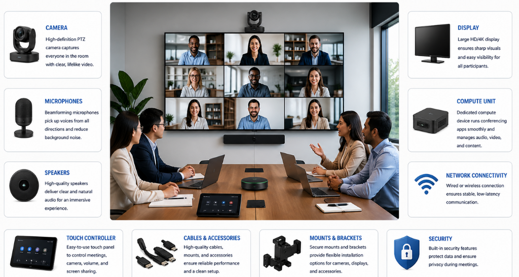 Before selecting any Video Conferencing System, it is important to analyze your organization’s specific requirements. Different businesses have different communication needs depending on team size, frequency of meetings, and type of collaboration. For example, a startup may need a simple Video Conferencing Setup for Office, while a large enterprise might require advanced Corporate Video Conferencing Solutions with integrated tools and high scalability. Identifying whether your focus is on internal meetings, client presentations, or global conferencing will help you narrow down the right Meeting Room Video conferencing solution that fits your use case.