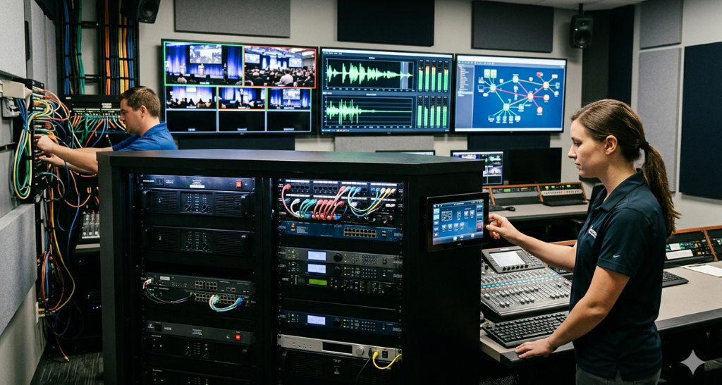 Modern AV Integration heavily depends on network infrastructure, especially with AV-over-IP solutions. High-resolution video streaming, video walls, and conferencing tools consume significant bandwidth.